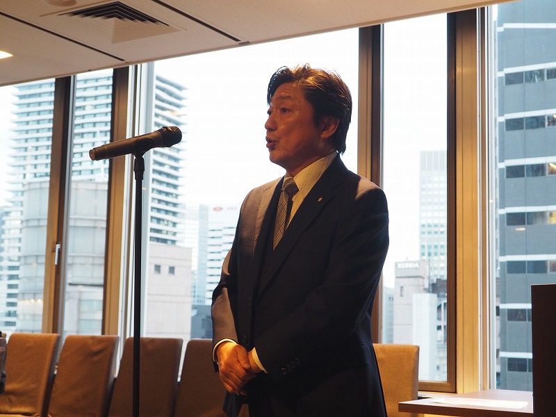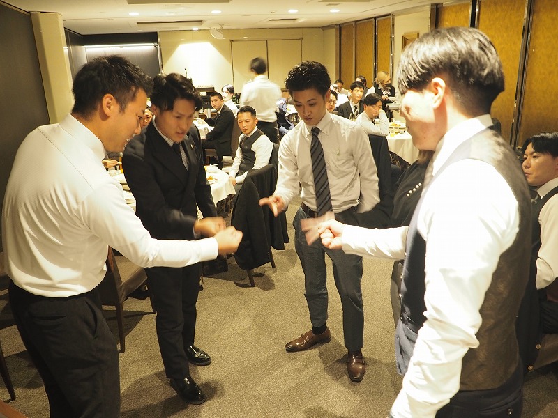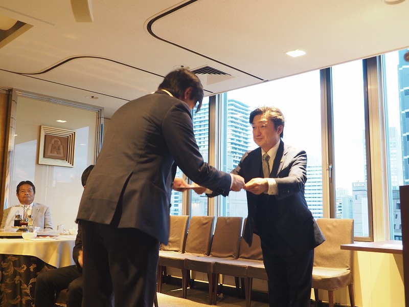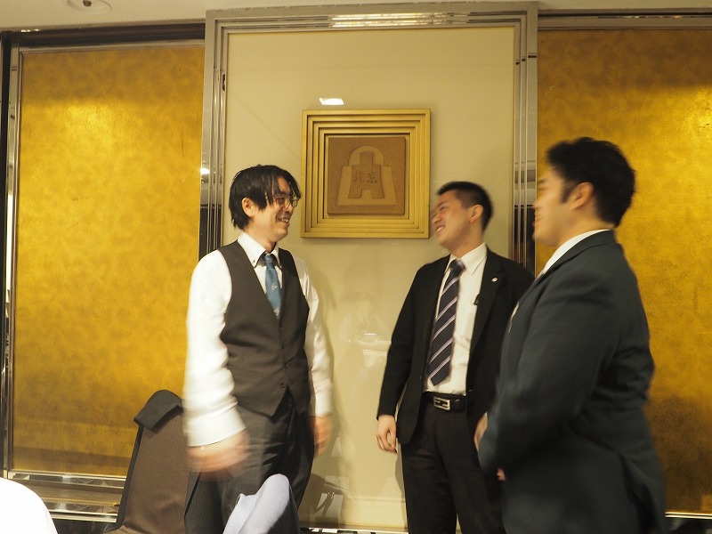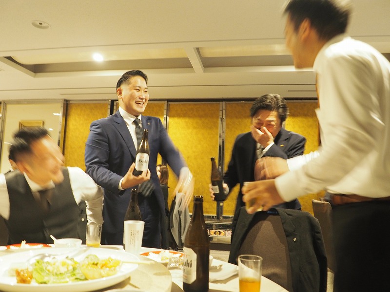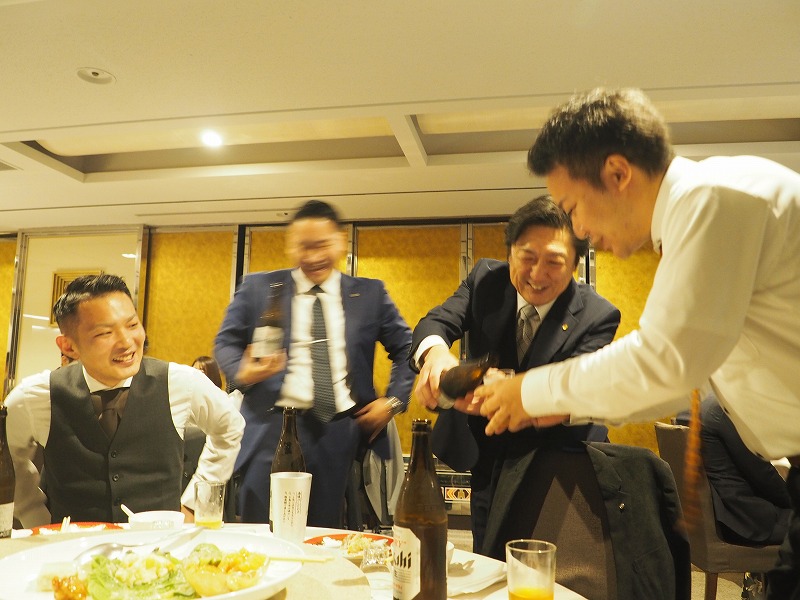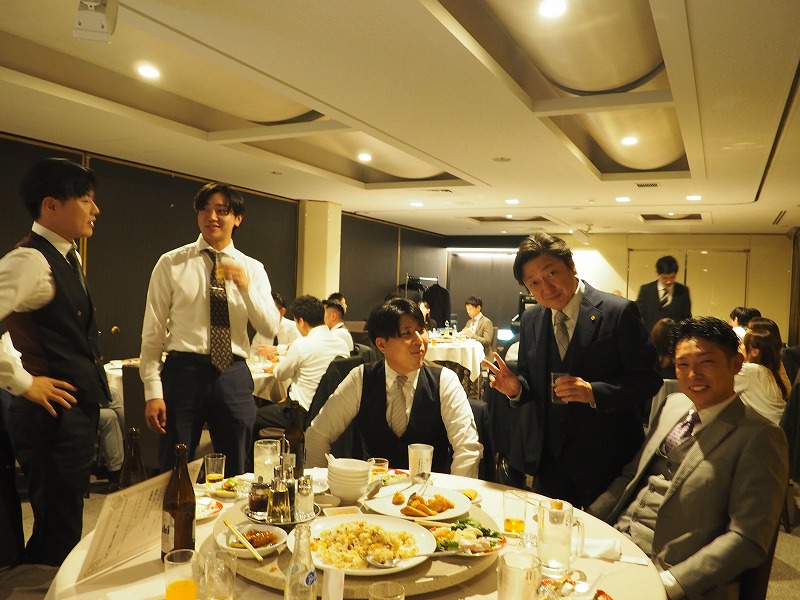 優績者表彰及び優績者スピーチ、辞令交付ののち、山中主任の乾杯で懇親会スタートです。