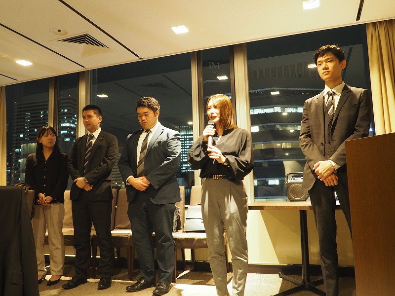 懇親会では、今春以降入社の5名の自己紹介のコーナーも。