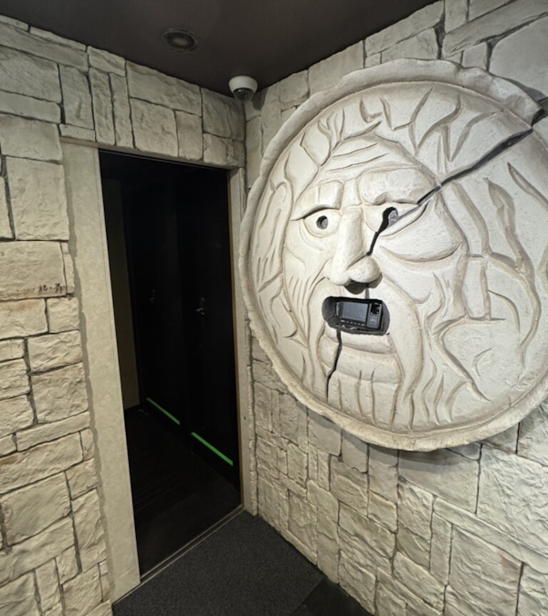 お店は会員制で、入口では“真実の口”に指を入れて指紋認証をすると自動ドアが開くという仕組み。